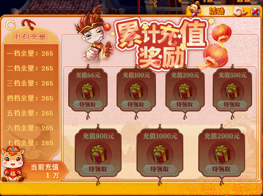 同时相应档位奖励存量将自动扣除1份,我们将为你保留奖励的领取资格直至本次充值活动结束。